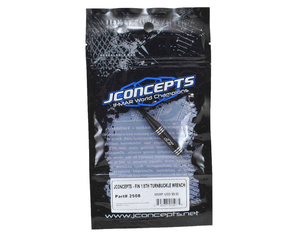 The JConcepts Fin 5mm 1/8th Turnbuckle Wrench is made of aluminum material and features a stout adjustment and handle area for easy turnbuckle adjustment. The Fin turnbuckle wrench has been laser marked with JC for authenticity and is the perfect complement to any tool set. The wrench is sized to fit just about anywhere in a racers toolbox and is a must have for any racer with JConcepts turnbuckles.
