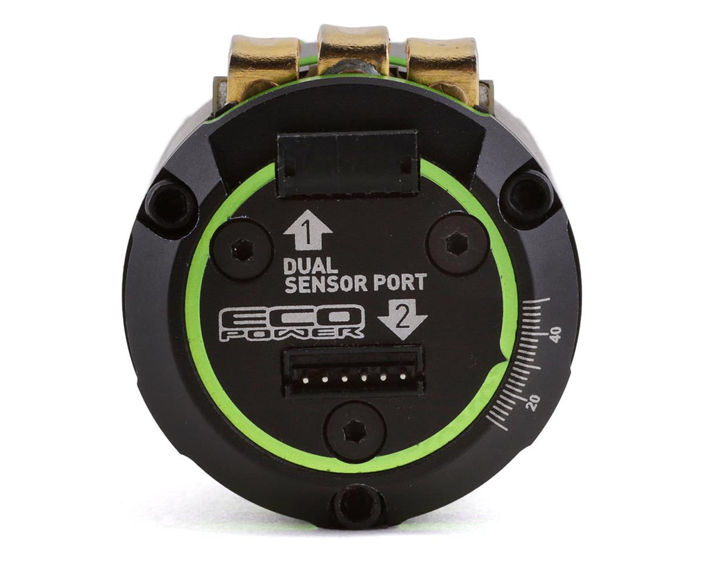 El EcoPower "Sling Shot SLV2" Sensored Brushless 3.5 Turn Drag Racing Motor fue desarrollado específicamente para carreras de resistencia de clase No Prep y Street Eliminator. El SLV2 Drag comienza con una lata liviana y muy ventilada para reducir el peso total y ofrecer una disipación de calor eficiente. La lata alberga un estator de alambre grande, cobre de alta pureza, bobinado a mano y un rotor de neodimio sinterizado de 13,0 mm de alto torque para crear una opción de motor de alto torque que puede funcionar con los perros grandes.