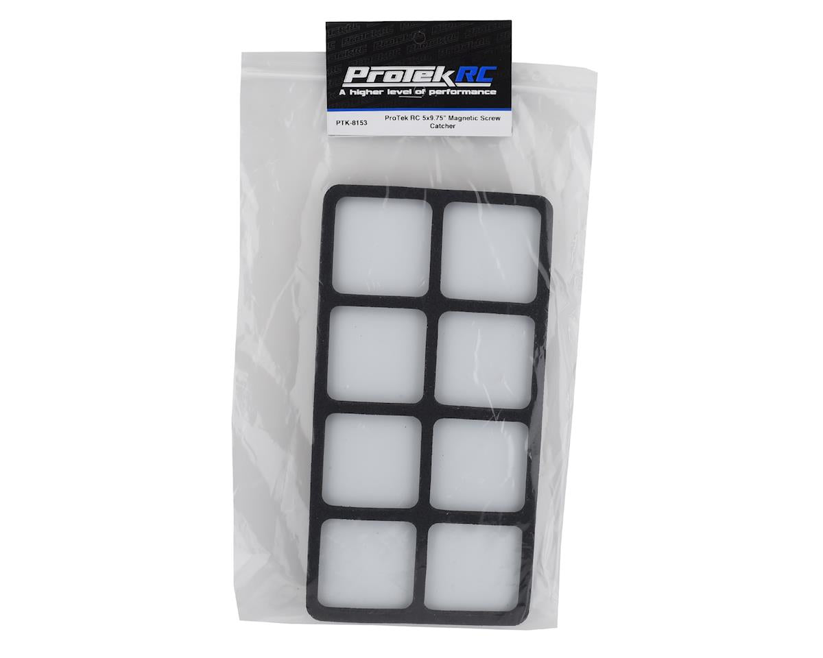 El conveniente tamaño de 5x9.75" hace que el receptor de tornillos magnético ProTek sea fácil de guardar en una variedad de espacios. El receptor de tornillos presenta espuma troquelada de 1/4 de pulgada de alto, separada en ocho espacios de 54x54 mm que facilitan la clasificación de hardware y otros piezas pequeñas para que estén al alcance de la mano. La superficie de vinilo blanco es resistente a las manchas y fácil de limpiar con agua y jabón, y el color blanco hace que las piezas pequeñas sean fáciles de identificar. Como ventaja adicional, el receptor de tornillos es un complemento perfecto para el Alfombrilla magnética ProTek RC de 10 x 11" (PTK-8152). Cuando se apilan juntos, ambos encajan perfectamente dentro del bolsillo del manual de instrucciones/hoja de configuración en el lado derecho de la bolsa de transporte ProTek P-8 (PTK-8000). Entonces, si se toma en serio el uso de llaves y ha estado buscando un producto que lo ayude a optimizar su espacio de trabajo, el receptor magnético de tornillos ProTek de 5x9.75" es una solución asequible que cualquier aficionado puede adaptar a su rutina.