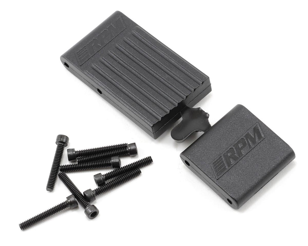 RPM Los soportes de mamparo T/E-Maxx sostienen los mamparos para mayor resistencia tanto en la parte delantera como en la trasera del vehículo. Gran parte de la flexión del chasis atribuida a la flexión del mamparo se eliminará debido a nuestro diseño integrado. Además, nuestra abrazadera delantera se ha alargado para agregar protección contra la suciedad y los escombros en el área del diferencial delantero. Nuestros aparatos ortopédicos están disponibles en tres colores populares: negro, azul y morado (todos los cuales combinan perfectamente con nuestros otros productos T-Maxx y E-Maxx).