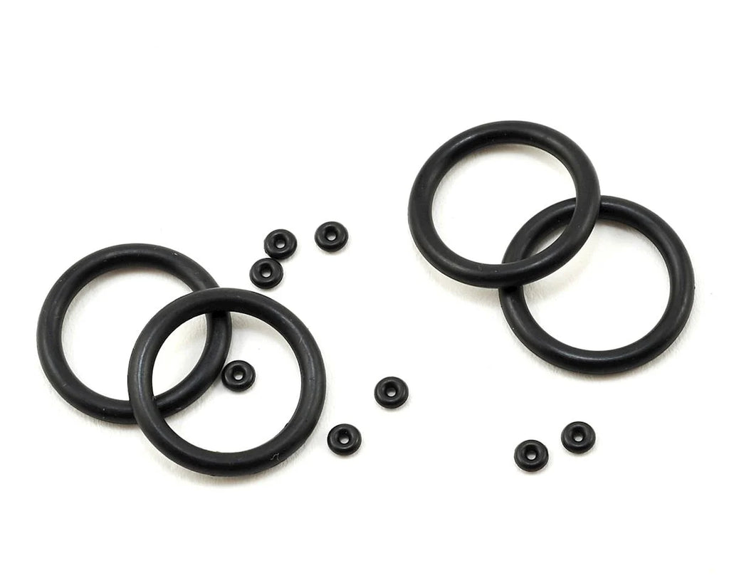 Tekno RC EB410 Emulsion O-ring Set. This is a replacement for the Tekno EB410 4wd buggy. Package includes four large shock cap o-rings and eight small bleeder screw o-rings.