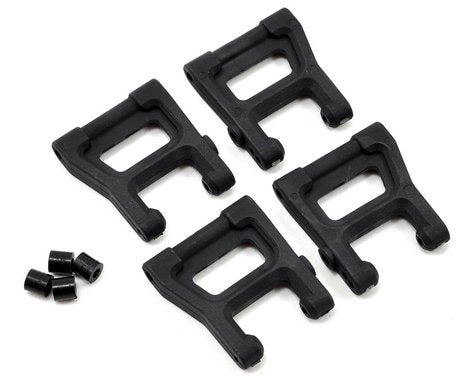 Este es un juego de brazos de suspensión delantera y trasera LaTrax de repuesto. El paquete incluye cuatro brazos de suspensión que se pueden usar en la parte delantera o trasera, y en el lado derecho o izquierdo del chasis, así como cuatro espaciadores de brazos.
