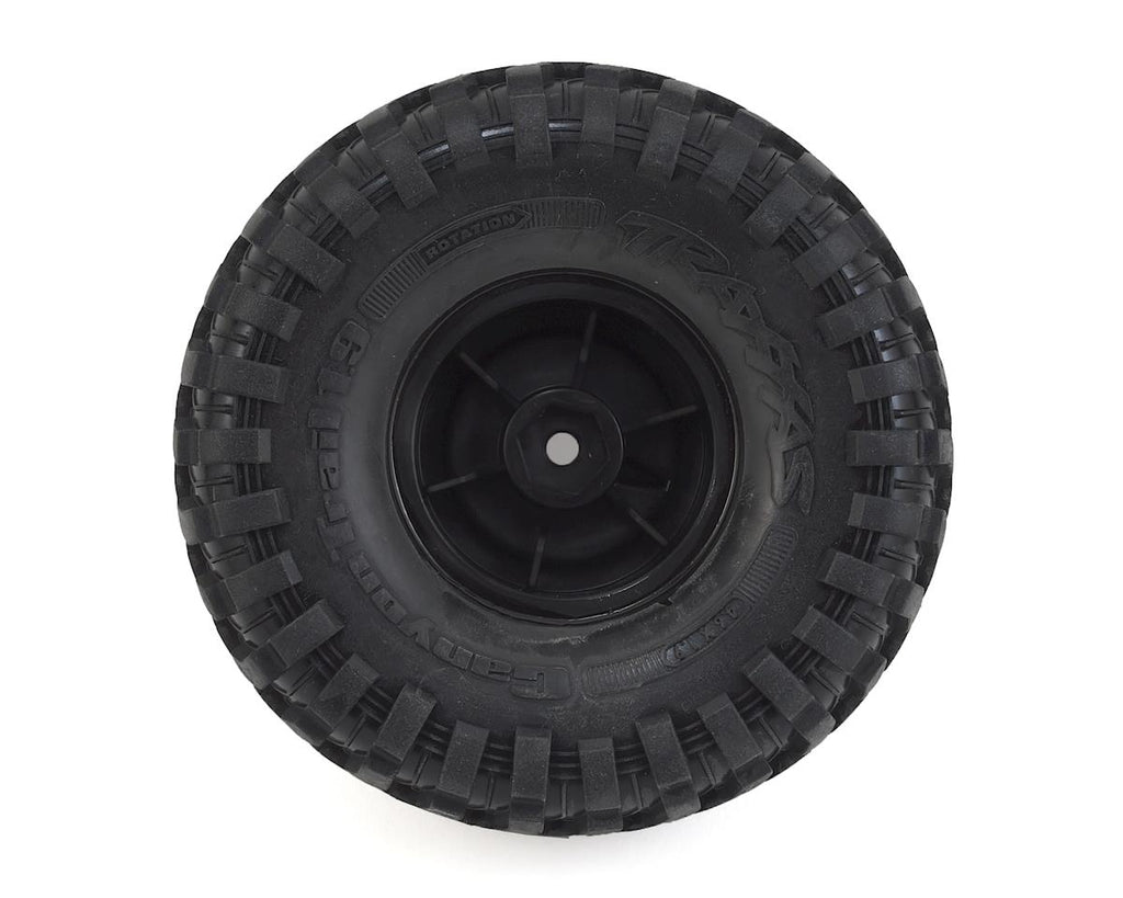 Un par de ruedas tácticas negras vienen ensambladas y listas para montar con inserciones de espuma preinstaladas y llantas Canyon Trail de 1.9 "x 4.6" montadas.
