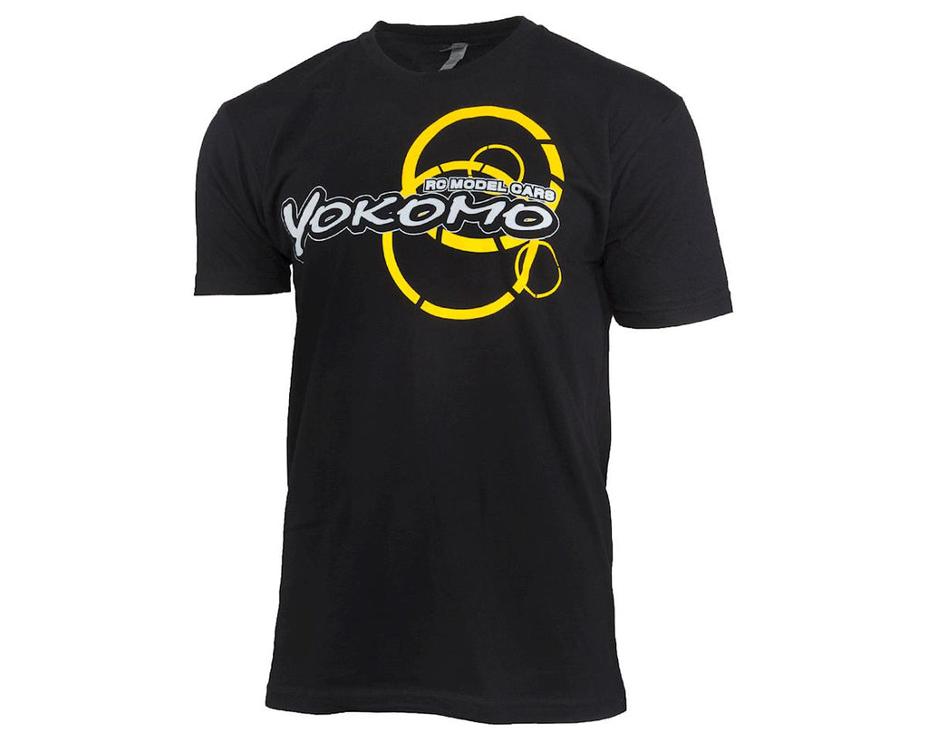 Esta es la camiseta del equipo Yokomo. Confeccionada 100 % en algodón, esta camiseta negra de manga corta se diseñó en Europa y presenta un audaz e intrépido logotipo de Yokomo en la parte delantera, la URL en un lado de la espalda y un diseño de logotipo inferior también en la espalda.