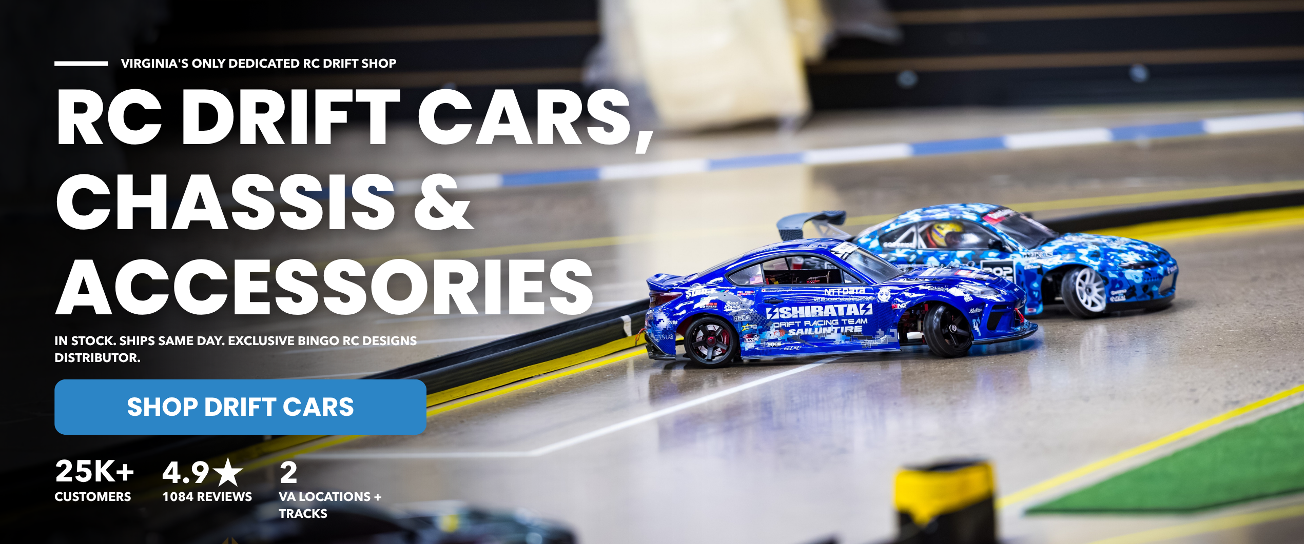 Along with our track, we stock hundreds of rc drift parts, accessories, bodies & more! We are the only retailer of Bingo RC Designs, which makes top-notch carbon fiber RC drift accessories.