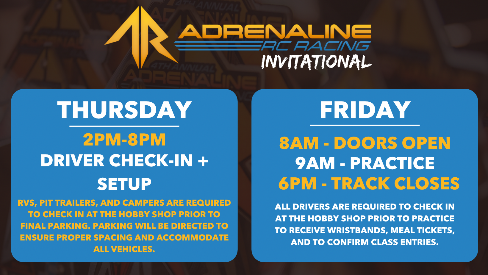 Your central spot for all things Adrenaline RC Invitational! October 3rd–5th, 2025