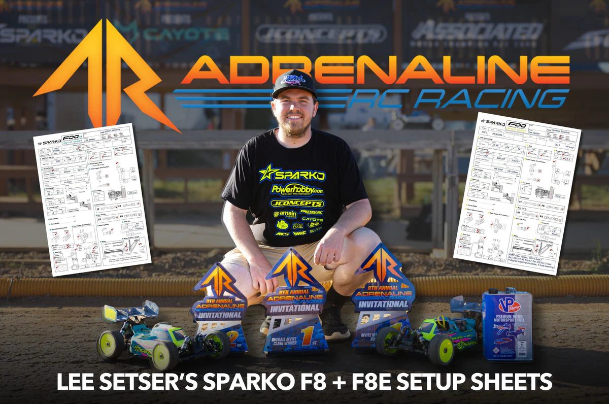 Want Lee's proven Setup? In this post, we share Lee Setser’s Sparko F8 and F8e setup sheets— his exact indoor and outdoor baseline builds tested at Adrenaline RC Racing. Whether you’re running nitro or electric, these detailed configs give you a proven starting point for speed, stability, and confidence on the track.