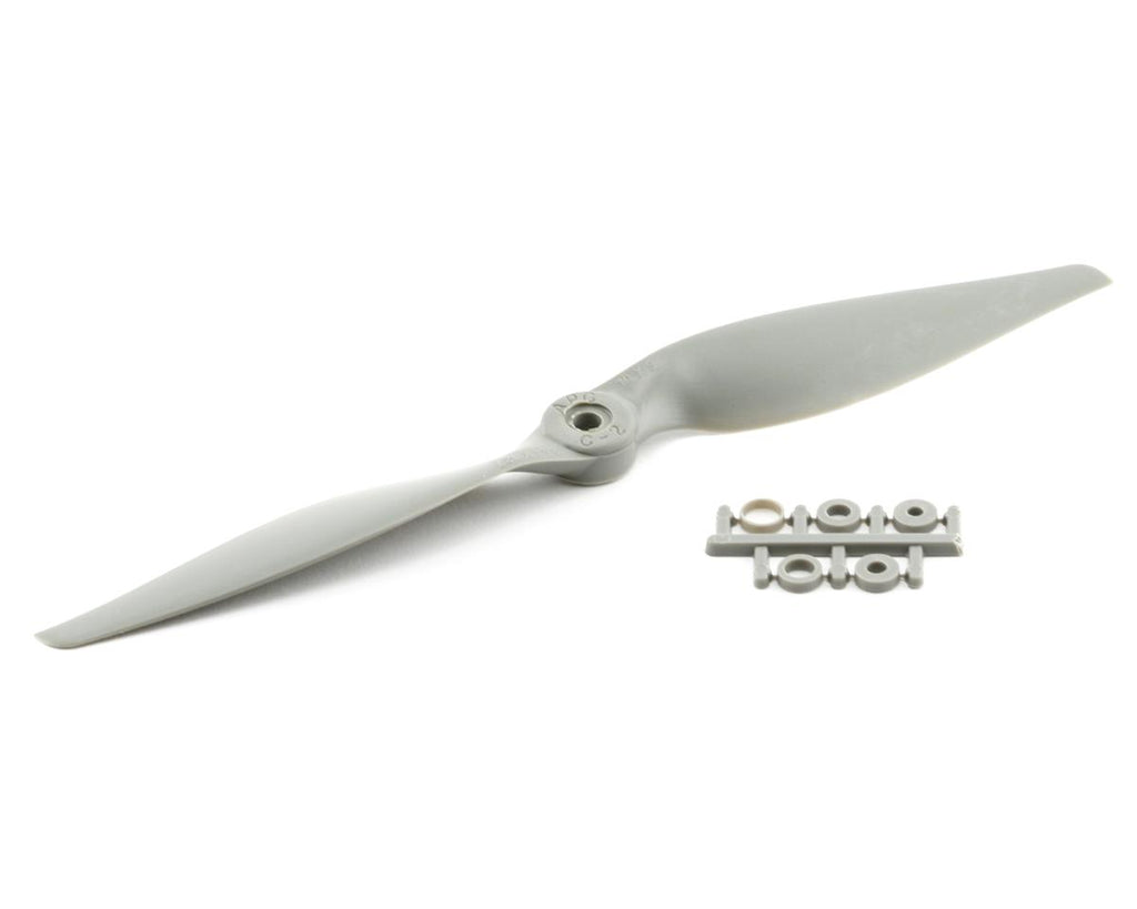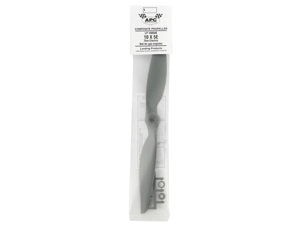 This is the APC 10x5 Thin Electric Propeller. APC propellers are manufactured using a pultrusion process which allows for a higher fiber (60%) to resin (nylon binder) density. This provides substantially higher strength and stiffness than glass-filled nylon. The additional stiffness is beneficial to control vibration resonance response. The higher strength allows the use of thinner cross-sections, beneficial to weight and aerodynamic efficiency.