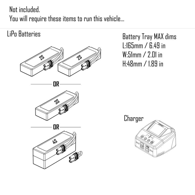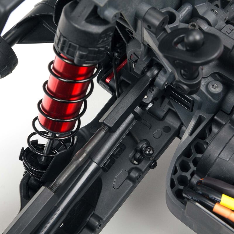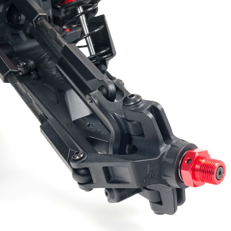 The footprint of this KRATON® 4X4 4S BLX Speed Monster Truck is 16% larger than the previous model, with higher shock towers, longer shocks, and wider suspension arms for longer, more plush suspension travel. The strength of the transmission has been bolstered with the inclusion of steel gearbox input gears, steel main diff gears and CVD Driveshafts. Upgrades are joined by proven features from before that deliver unstoppable performance in environments ranging from off-road, dirt, and grass to parking lots, paved and asphalt surfaces. These include a strong composite chassis and retained hinge pin plates; protective skid plates in front and rear; steering with more clearance for stones; a castellated slipper pad and sliding gear mesh; and rubber-shielded bearings throughout. The KRATON® 4X4 4S BLX also incorporates the signature ARRMA® easy-access modular design to make routine maintenance fast and simple.