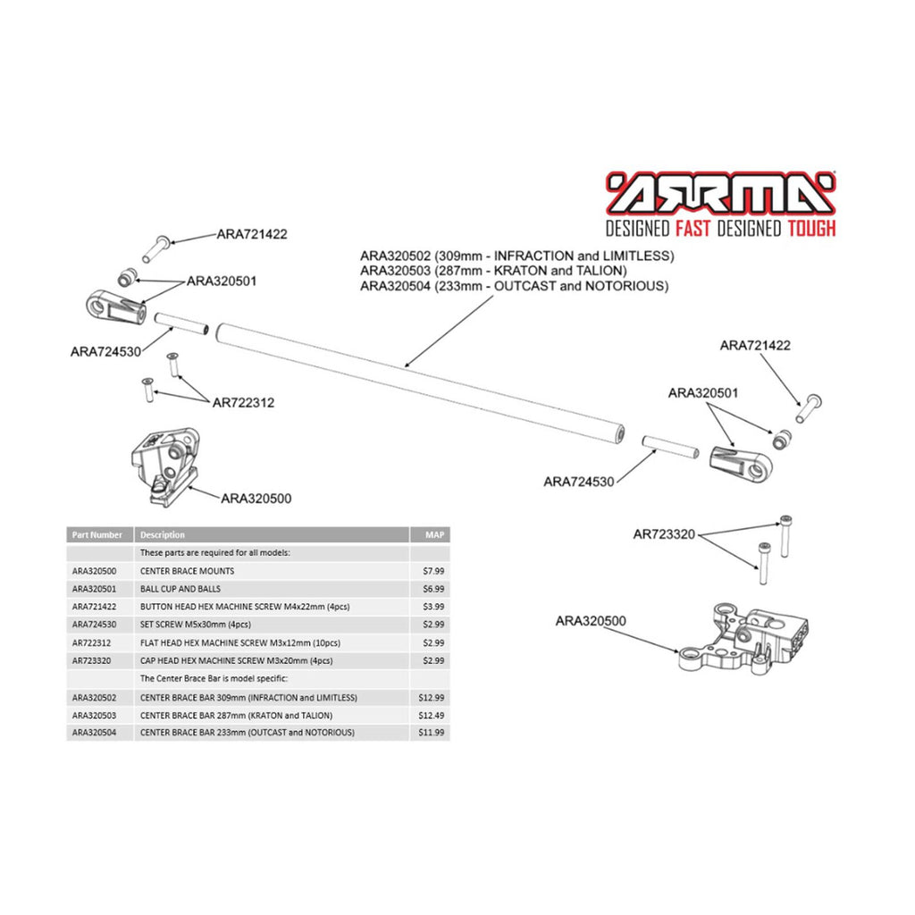 This is an ARRMA Ball Cup and Ball Set for the Notorious BLX, Outcast BLX, Kraton BLX, Typhon BLX, and Talion BLX.