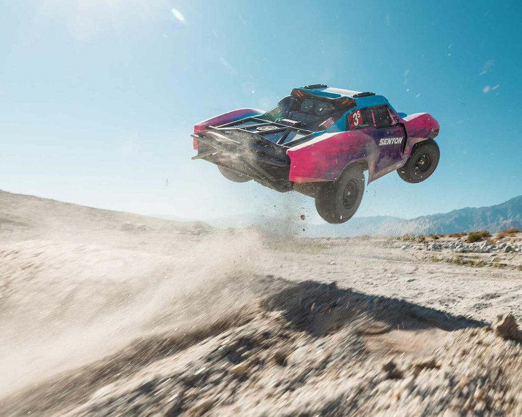 Everyone can get in on brushless short course bashing fun with the SENTON 223S BLX 4X4. Like all ARRMA vehicles, it's fast and tough — providing new and experienced brushless drivers with amped-up performance straight out of the box. Tough metal and composite materials are used for an easy-to-maintain, super-durable design. The heavy-duty 4X4 drivetrain holds up to extreme bashing, while the all-terrain suspension package and adjustable, oil-filled shocks soak up bumps.
