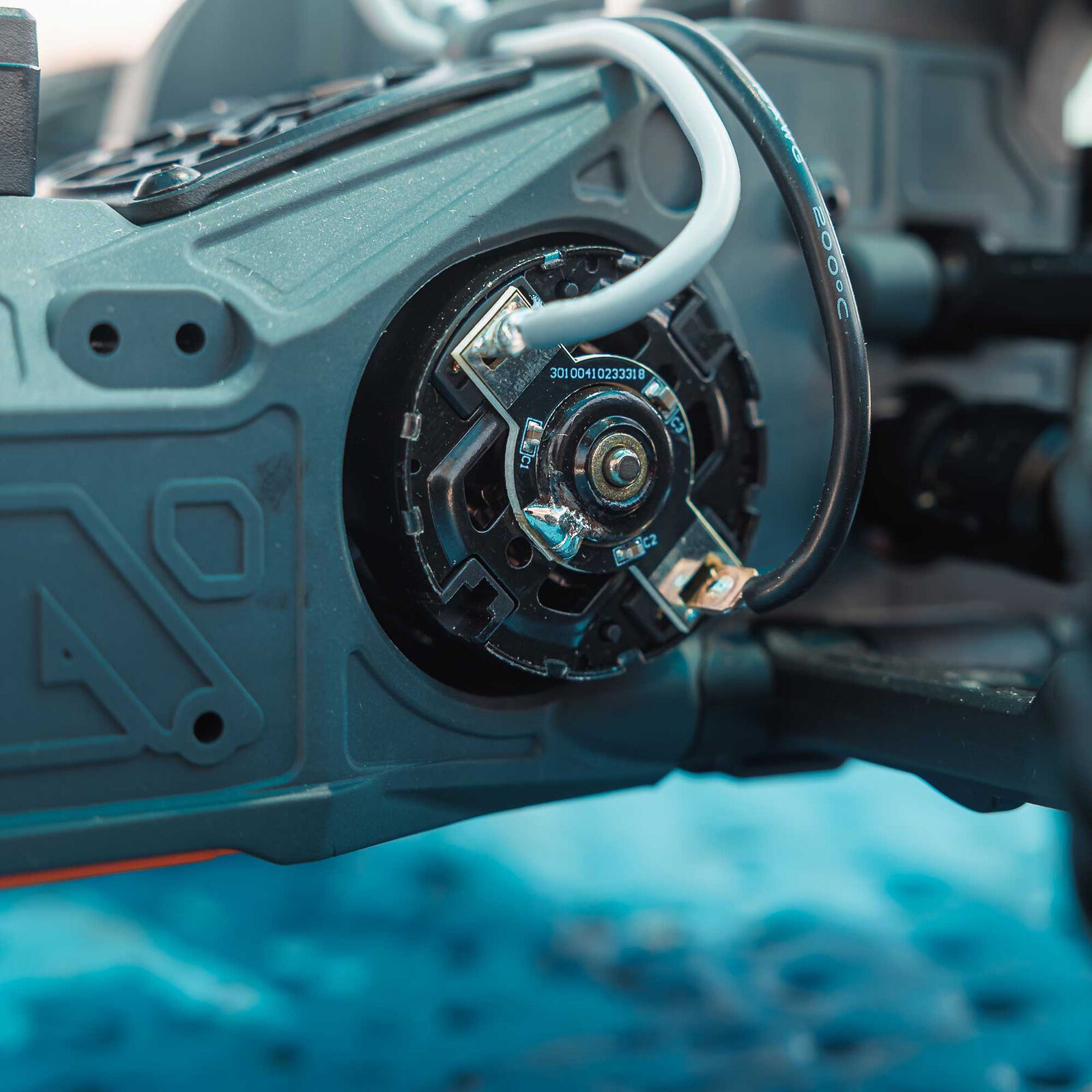Factory assembled and installed, the heavy-duty, metal gear differential sends power from the MEGA 550 14T brushed motor to the rear all-terrain tires for blasting through challenging terrain. Upgrade to brushless power whenever you're ready — the VORTEKS transmission is tough enough to take it.