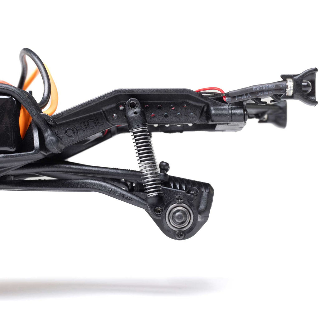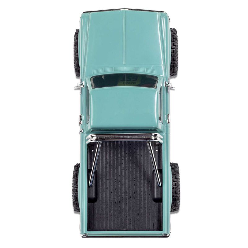 The Chevy K10 includes an angled skid plate to let you easily slide over challenging obstacles - a feature usually found only in competition crawlers. Ramped axle housings and high clearance links also help to avoid dragging and hangups. Climbing stability on the rocks gets a boost from the chassis’ forward weight bias. Other performance features include damped 25mm shocks, full ball bearings, a powerful Axial 65T motor, and dependable Spektrum electronics that are mounted low in the chassis for the optimal center of gravity.