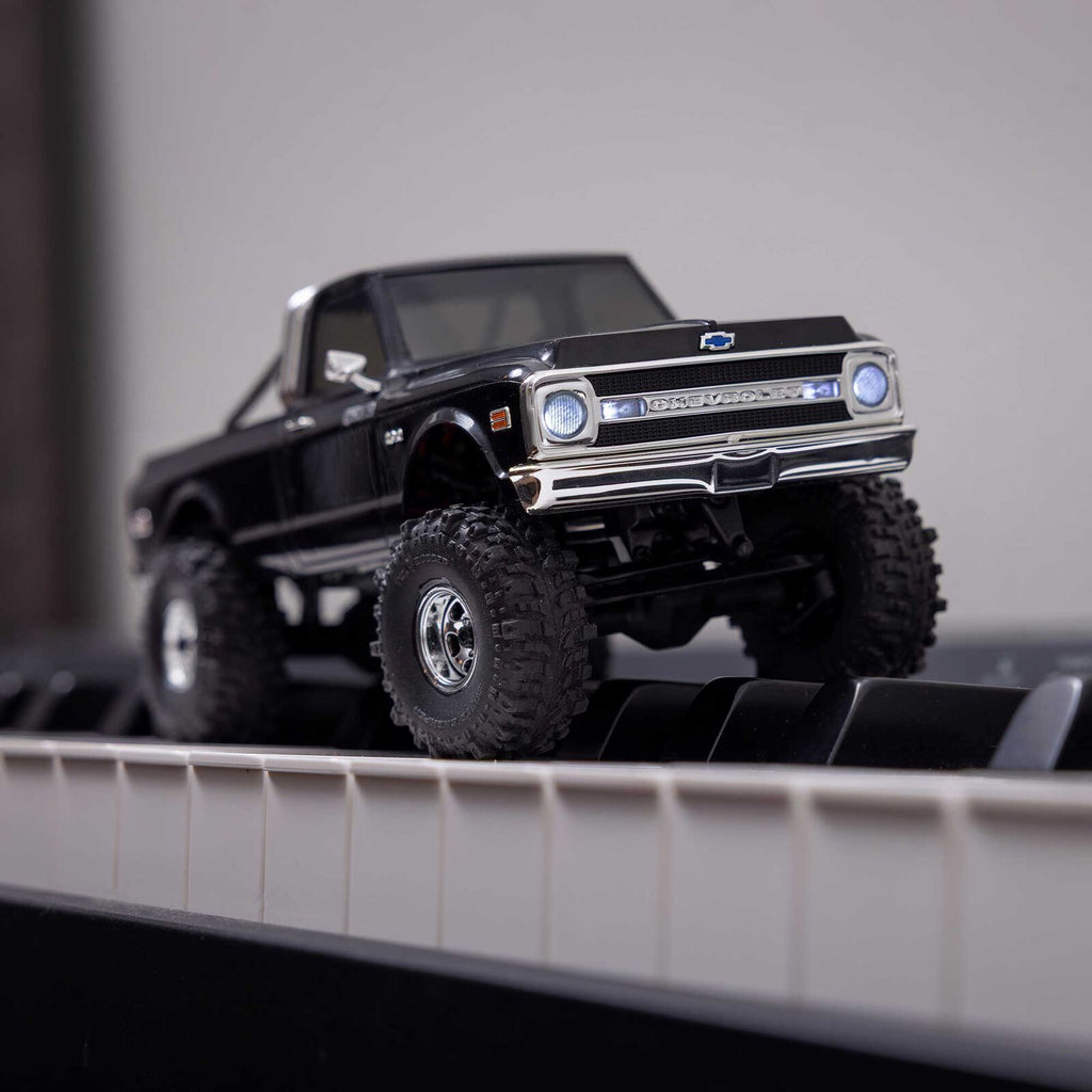 Topping off that trail-ready engineering is a Chevy K10 ABS hard body that proves detailed scale realism can come in any size. An authentic recreation of the full-size truck, the body is complemented by front and rear LEDs and officially licensed Interco Super Swamper tires. These soft compound tires with foam inserts provide all the traction needed for outdoor trail action or for crawling across a desktop, table, or cluttered floor. You can turn any space into your personal Rubicon trail!