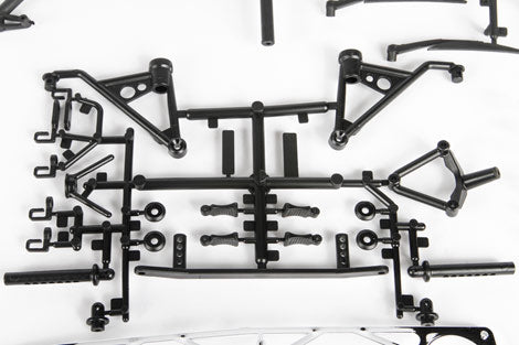 - Additional molded parts; body mounts, body clip handles, wire looms and spare tire mount