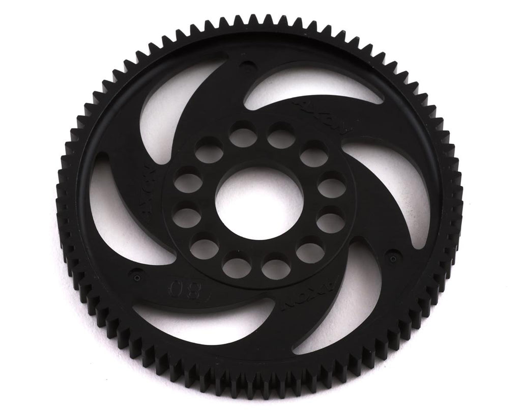 Axon TCS V2 48P Spur Gears have been tested over a long period of time in various different conditions, and offer users a more gear with improved roundness and an optimised tooth shape. The result being improved feel under throttle and braking, as well as better rolling performance when cornering. These gears are available in 80 to 90 tooth count options, spaced in 2 tooth increments. Use the pull down menu above to choose the appropriate tooth count for your application.