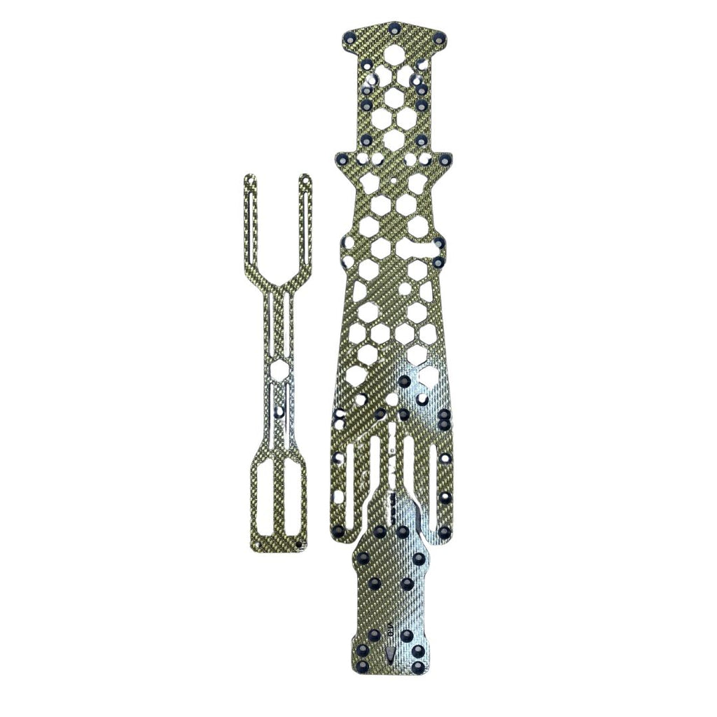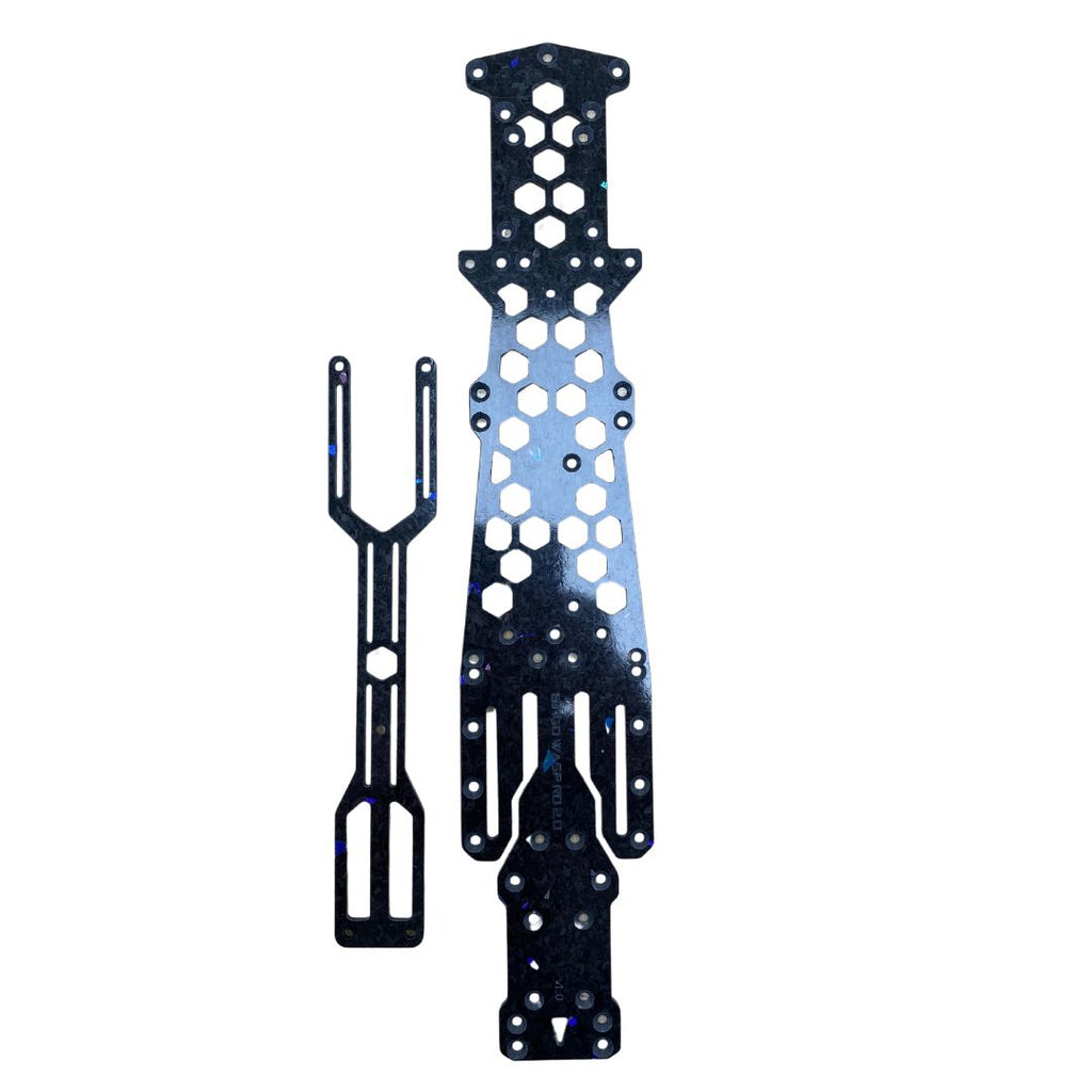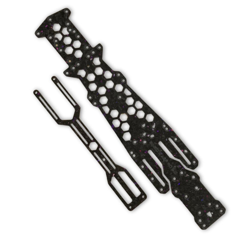 The Bingo RC Designs Wasp RD 2.0 is an upgrade chassis for the Yokomo Rookie Drift 2.0 drift car kit. The Wasp RD 2.0 replaces both the lower and upper decks with carbon fiber plates that reduce the weight and increase the flexibility over the stock plastic components.
