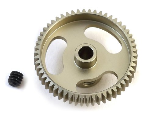 CRC "Gold Standard" 64P Aluminum Pinion Gears are super lightweight, true and precision CNC machined in 7075 aluminum, then hard-coat anodized. All unnecessary material has been removed in an effort to produce the lightest pinion available. The face is undercut all the way out to the teeth diameter. Then on the larger pinions, the undercut face is scalloped in a triangle design to remove even more material. Complete with a 5-40 UNC set screw (1/16 inch wrench), each gear has the tooth number laser etched on the barrel, and the gears are available in a variety of tooth count options. Please choose from the pull down menu above.
