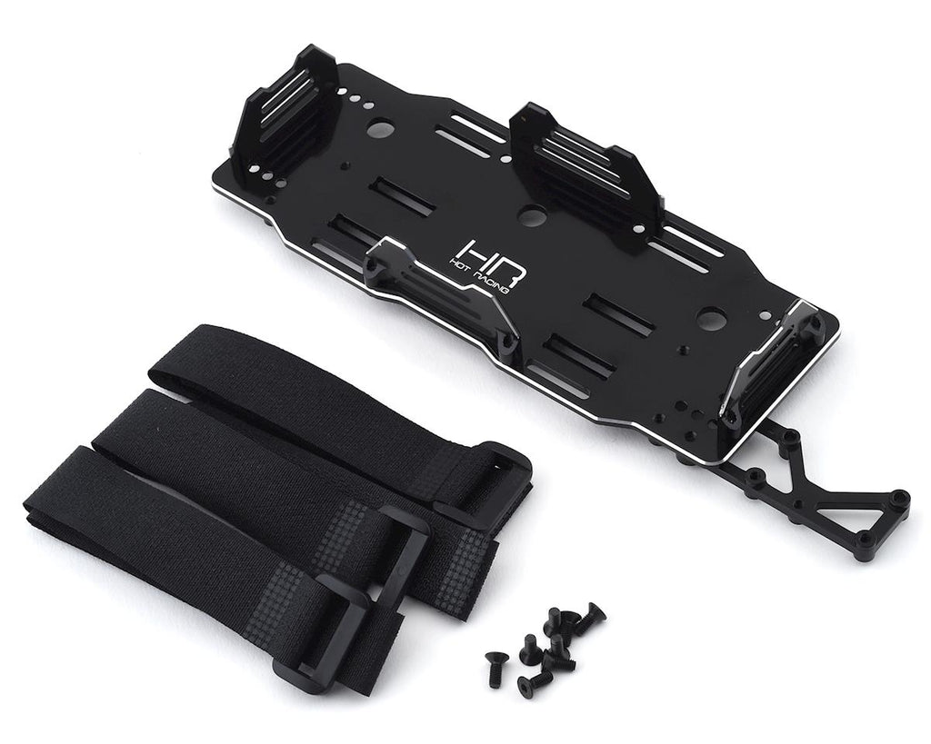 This is an optional Hot Racing Aluminum Chassis Brace 6S/8S Battery Mount, intended for use with 1/8 Arrma Kraton BLX, Notorious BLX, Outcast BLX, Senton BLX, Talion BLX, and Typhon BLX kits.