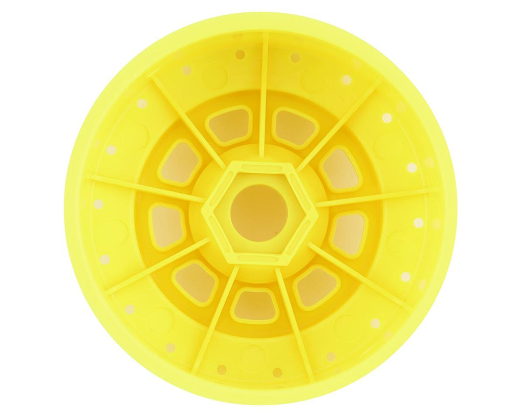 The JConcepts wheels are available in white, black, and yellow color styles. The 9-Shot wheels are the maximum size allowed under ROAR rules and make a statement with their large, open spoke appearance, slight concave dish shaped design and superior inner rib design. The wheels incorporate an outer glue catch that resists excess glue from running down the wheel face during the gluing process. JConcepts wheels are manufactured using advanced techniques to ensure trueness and durability.