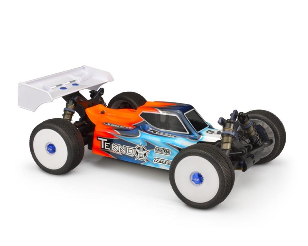 The JConcepts EB48 2.0 S15 Body blends performance features from the popular Silencer body with unique design features such as mid-body winglets and rear stabilizer kick-up. The roof of the body remains strong with the upper fin in position for stability and tracking ability. The area behind the cab remains clean with a deep-rooted position allowing exposure to air and escape. The front and rear body mount area is cleanly designed and allows for a drop-fit on the Tekno EB48 2.0.