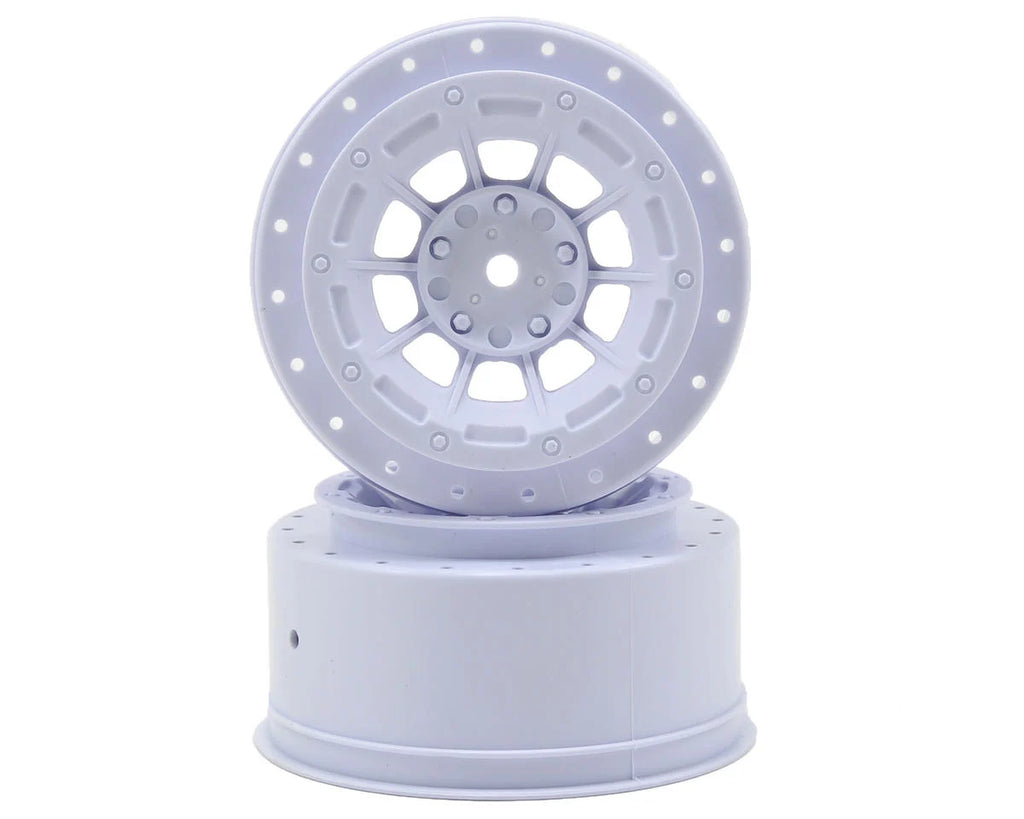 By nature, Short Course trucks have a high center of gravity and tend to feel light or tippy in high-speed sections. There is no better way to improve on-track stability than to add width, and with the Hazard wheels, sweeping through the high-speed corners gets a little easier. Wheel profile, interior and exterior ribbing and spoke design were all areas of focus while creating the combination of durability, clearance, functionality and appearance. With the black color and a matte face appearance, being unique is worry free as practically any paint scheme can be matched to these exciting new wheels. The hassle free and lightweight 1-piece design creates the ultimate race and show wheel for any competition.