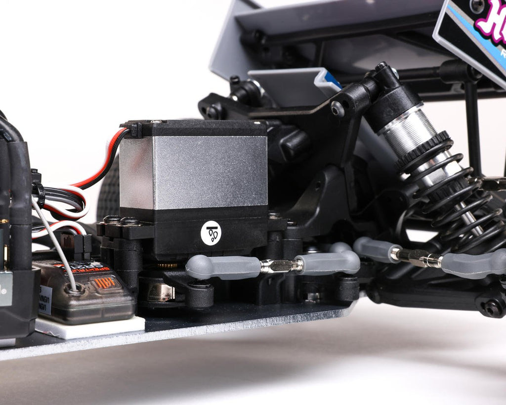 The 22S Sprint comes with a Spektrum 2S brushless system installed. Driven by a Firma 45A Smart Lite ESC and Firma 3650 3300Kv brushless motor, this combo delivers the power to reach speeds of 25+ mph. The included Spektrum SLT2 2.4GHz transmitter offers steering trim, steering rate, steering reversing, and other useful features.