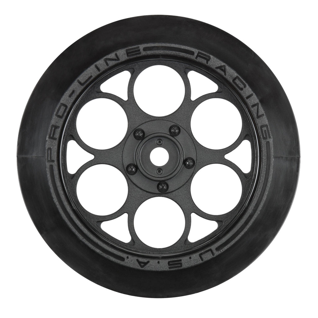 This is a pair of Showtime Front Runner 2.2"/2.7" Black Drag Racing Front Wheels. It's Showtime! Pro-Line has an all-new 2.2"/2.7" Black Drag Front Wheel featuring a scale spoke pattern that mimics full-size drag wheels. The Showtime Front Runner 2.2"/2.7" wheel is a perfect fit for Pro-Line's new Front Runner 2.2"/2.7" Tires (PRO10197203) and is designed to be super lightweight and narrow for maximum performance. The Showtime Front Runner Wheels are a strong and lightweight 12mm hex wheel making them the ideal choice for performance drag racing. The wheel offset is ideal for Losi® 22S™ No Prep Drag Car, 2wd Slash® trucks converted to no-prep Drag Racing cars, and AE DR10. This wheel is designed to eliminate the need for foam insert completely for the ultimate in lightweight performance. The Showtime Front Runner Wheel is proudly made by Pro-Line and Made in the USA. Launch your no-prep Dragster to the next level with the Pro-Line Showtime Front Runner Drag Wheels today!