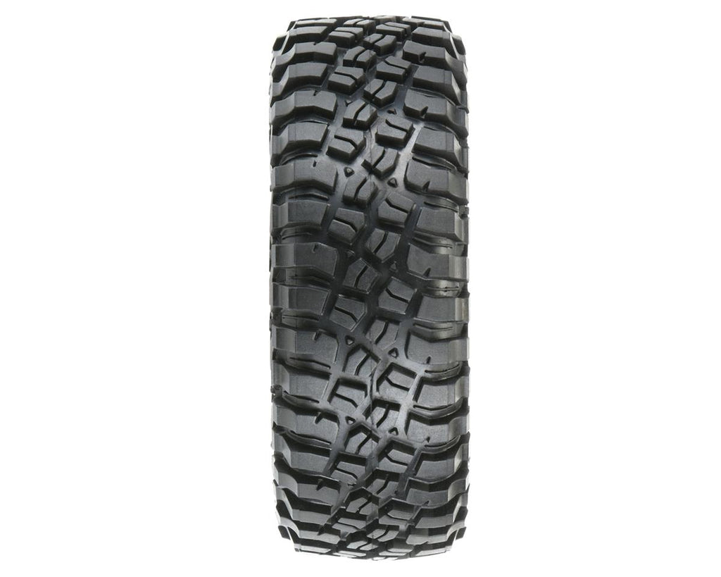 This is a pair of Class 1 BFGoodrich® Mud-Terrain T/A® KM3 1.9" tires. Pro-Line is proud to announce, in cooperation with the leading full-size Off-Road tire manufacturer BFGoodrich®, the co-release of the brand-new fully licensed Class 1 (4.19” OD) size Mud-Terrain T/A® KM3 1.9" tires! Pro-Line was given early access to the design of the full-size BFG Mud-Terrain T/A® KM3 tire and recreated it for the Scale Crawling community in 1.9” size! The KM3 tires are now available in the softest Rock Crawling Rubber ever made: The all-new Predator Compound! The Super Soft Predator Compound excels on wet or ultra-low traction surfaces to give you grip like you have never experienced before. The Mud-Terrain T/A® KM3 (Key feature: Mud traction 3rd Generation) is BFGoodrich's Off-Road Maximum Traction tire with aggressive tread lugs that bite into loose or muddy surfaces and climb over slippery rocks. Based on the BFGoodrich® Krawler T/A® KX symmetric tread design, the Mud-Terrain T/A® KM3 features deep, self-cleaning independent tread blocks and linear transverse flex zones to provide the grip that you need to get over the toughest obstacles.