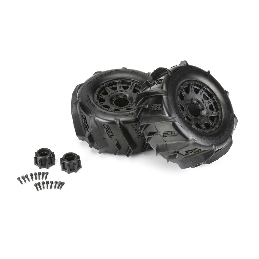 PRO1019210 | Dumont 3.8" Paddle Sand/Snow Tires Mounted on Raid Black 8x32 Removable Hex Wheels (2) for 17mm MT Front or Rear