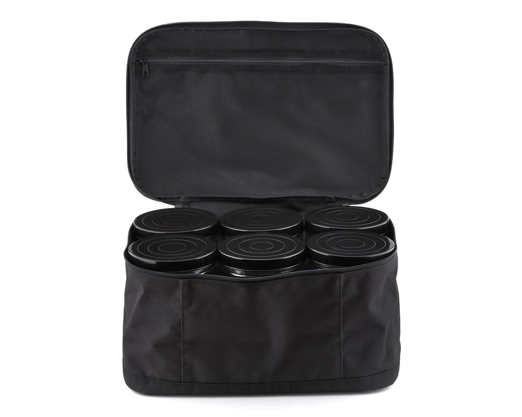 The ProTek RC 1/8 Buggy Tire Bag is here to make hauling tires easy peasy! With six airtight 8" tall and 4.75" diameter screw-on lid storage tubes, you'll be able to protect your tires and anything else that fits inside. Crafted from heavy duty nylon material and measuring 17" wide, 12" deep and 9" tall, the bag gives peace of mind and a stylish statement (with the signature ProTek RC logo in white on the lid). Inside, a 16x11" mesh zipper pocket lets you stash setup sheets, tools, or other small accessories to bring to the track. If you're looking to stay neat, organized, and ready, this tire bag is essential equipment!