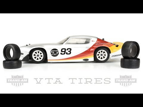 This pair of VTA tires is fully-approved for U.S. Vintage Trans-Am Racing and is fully-capable on any surface: carpet, prepared asphalt or parking lots. Utilizing a super long-lasting compound and molding technology perfected by our partners at Pro-Line Racing, we're proud to say these VTA spec tires are 100% Made in the USA