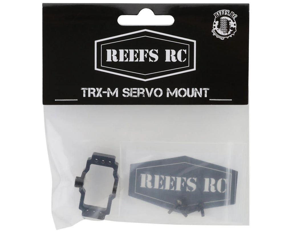 This is The Reefs RC Traxxas TRX-4M Aluminum Servo Mount. Designed to fit the 99Micro and the 179Micro servos on the TRX-4M, this optional servo mount is constructed from high quality, lightweight aluminum to increase durability, and enhance steering precision and overall performance by eliminating flex found in stock composite servo mount!