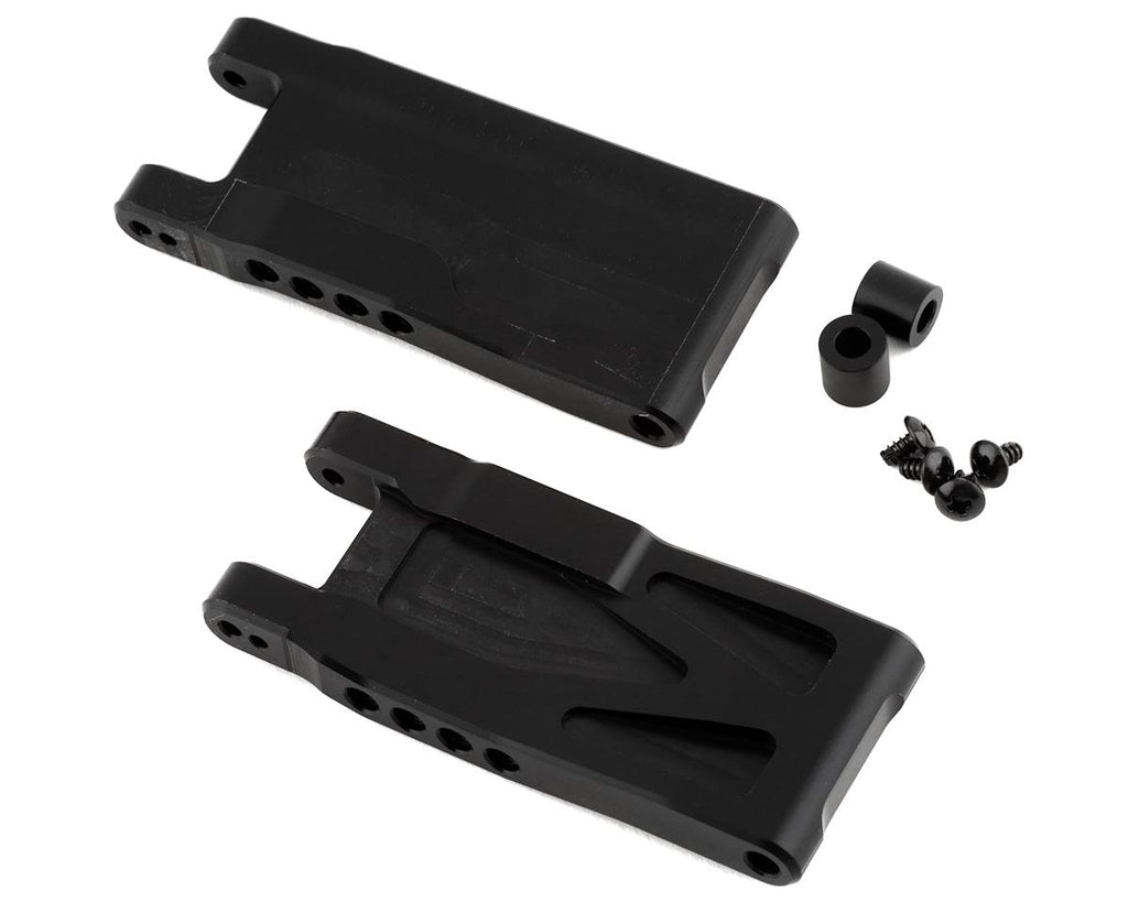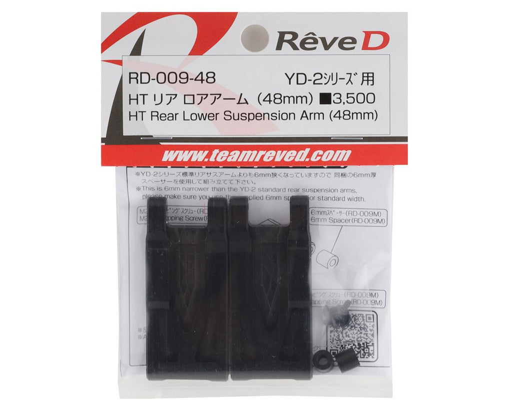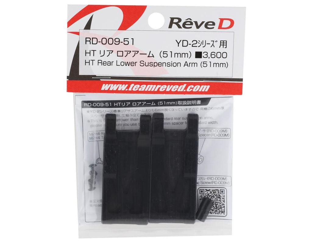 The Reve D HT Rear Lower Suspension Arm Sets are offered in three different lengths, and improve rear traction thanks to the Duracon POM material, shape, and structure.