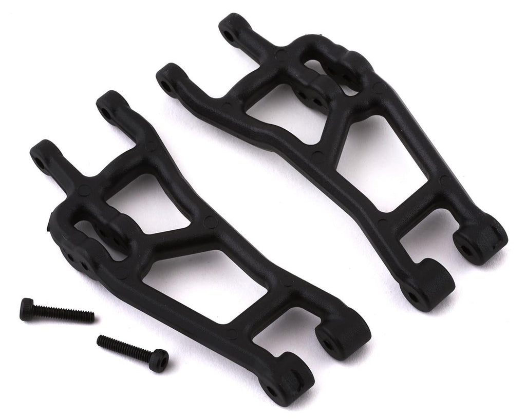 This optional set of RPM Black Losi Mini-T 2.0 Heavy Duty Rear A-arms are designed to replace the stock A-arms on your Losi Mini-T 2.0. These beefier A-arm are made of premium nylon material and are less prone to damage since the shock pivot ball is captured and no longer fully exposed.