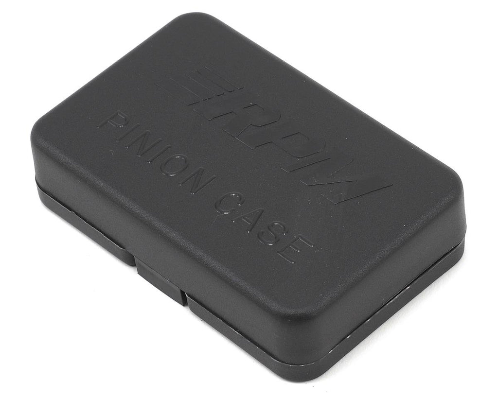 Just one small nick on a pinion can eventually destroy a plastic spur gear! With that in mind, RPM designed this case that holds each pinion on its own post and the lid snaps shut, so there is no need to tighten the set-screw to hold the pinions in place! Included with the case is a peel-off decal sheet with two pinion to spur gear ratio charts for both 48- and 64-pitch gears. The appropriate chart can be placed in the recessed area on the bottom of the case. Also on the decal sheet is a set of numbered squares from 14 to 31 (gear teeth), that can be adhered to the inside of the case. There are ten blank squares so you can write in your own numbers if needed. Available in black or translucent blue.