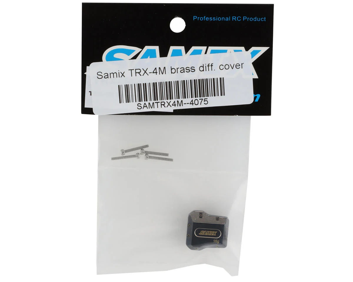 The Samix TRX-4M Brass Differential Cover is a great option for those looking to lower the CG of their micro crawler. Made from CNC machined brass, this differential cover will add 16g of low end weight. Intended for the Traxxas TRX-4M, these are a direct fit and add an increase in durability and style. Package includes one differential cover and hardware.