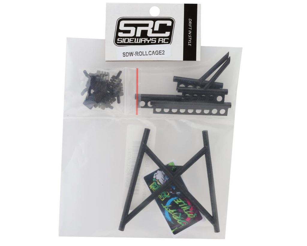 SRC 1/10 Drift Roll Cage. This is a meticulously crafted, ultra-realistic body accessory tailored to seamlessly complement the majority of 1/10 drift car bodies. With extreme attention to detail, SRC even included beautiful weld lines. The cage effortlessly attaches with its flat tabs and servo tape, ensuring a snug and stylish fit.