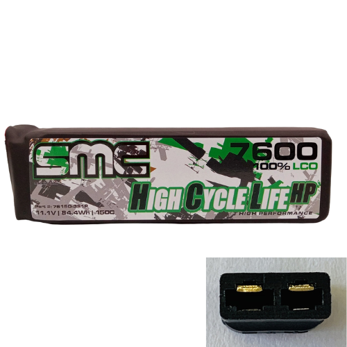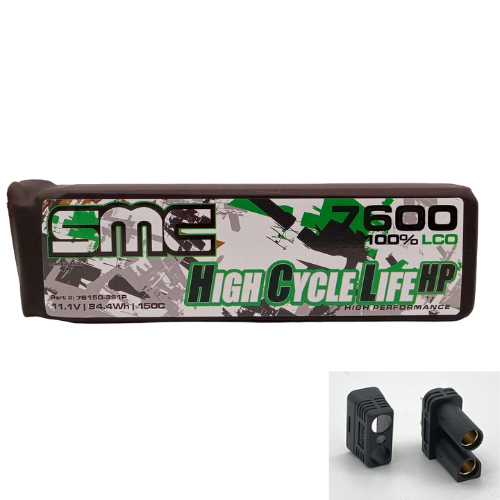 HCL-HP 11.1V-7600mAh-150C pack. Built robustly with five G10 plates and rubber style shrink.