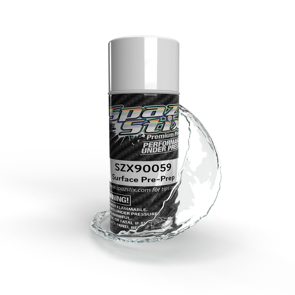 Applying Spaz Stix Surface Pre-Prep is an especially important step when using Spaz Stix Color Change paints to finish your polycarbonate R/C body. Using it prevents swirls caused by static electricity from the body, and improves adhesion. Apply in one very light coat (barely a mist) before spraying your color.