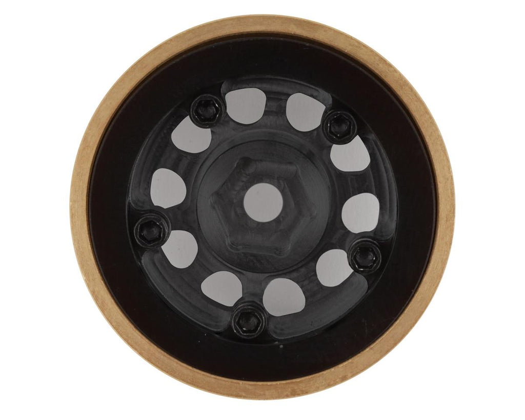SSD SCX24 1.0” Aluminum/Brass D Hole Wheels are a unique option for the SCX24 that combines stock wheel offset in a hybrid aluminum and brass beadlock configuration. Compatible with 1.0" size tires, these three piece wheels look incredible and are a great way to dress up your SCX24. Plus, the additional weight of the aluminum and brass design adds 24 grams of weight per wheel (96g for four wheels), and will help keep your mini rig stuck to the rocks when the trail gets technical. Package includes two wheels.
