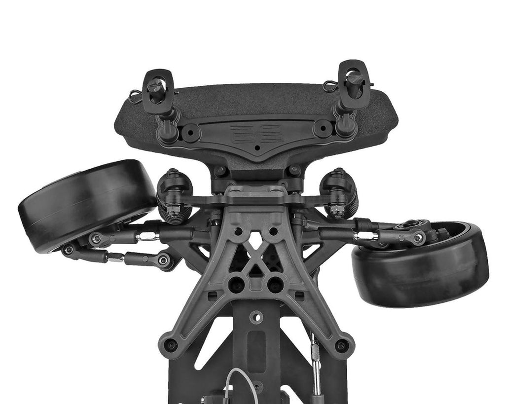 The Team Associated DC10 boasts a meticulously crafted 2.5mm G10 chassis and top plate, engineered for optimal weight distribution and balance. This lightweight yet robust chassis is complemented by fully adjustable camber and toe links and G10 shock towers, providing a solid foundation for high-performance drifting. The chassis also features a +6mm transmission height adjustment insert, which raises the roll center and accommodates larger spur gears, enhancing the vehicle's stability and control during high-speed drifts.