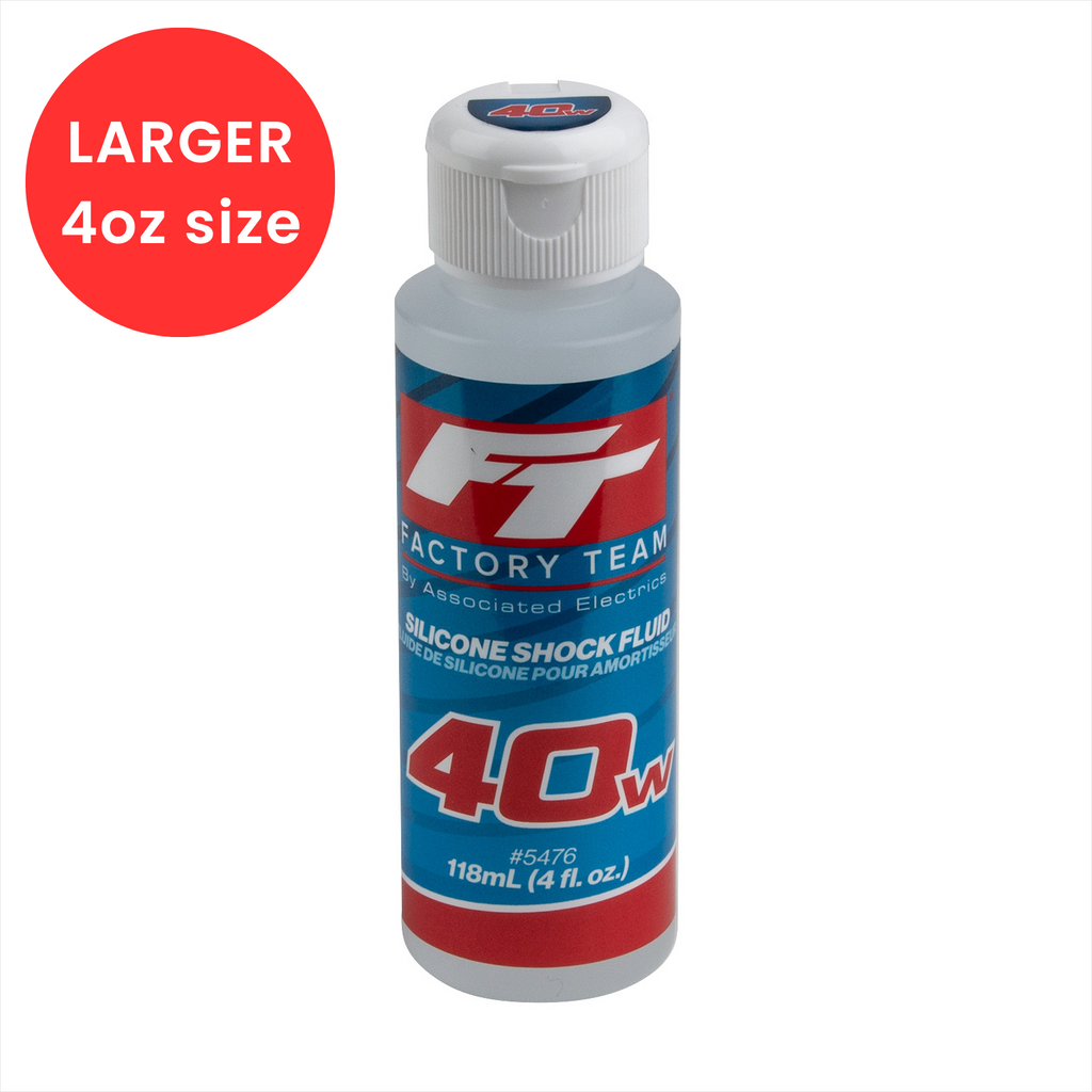 Team Associated Factory Team Silicone Shock Oil. These four ounce bottles of shock oil are made from 100% pure silicone and will not thin out in hot weather or thicken up in cold weather. The higher the weight number of the oil, the thicker the oil is. Team Associated shock oil is generally slightly thinner than Team Losi shock oil with the same 'weight' rating. Available in various weights, please select the weight you need from the list above.