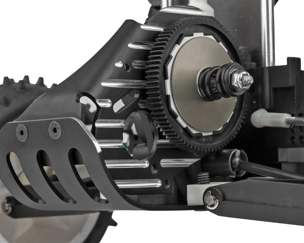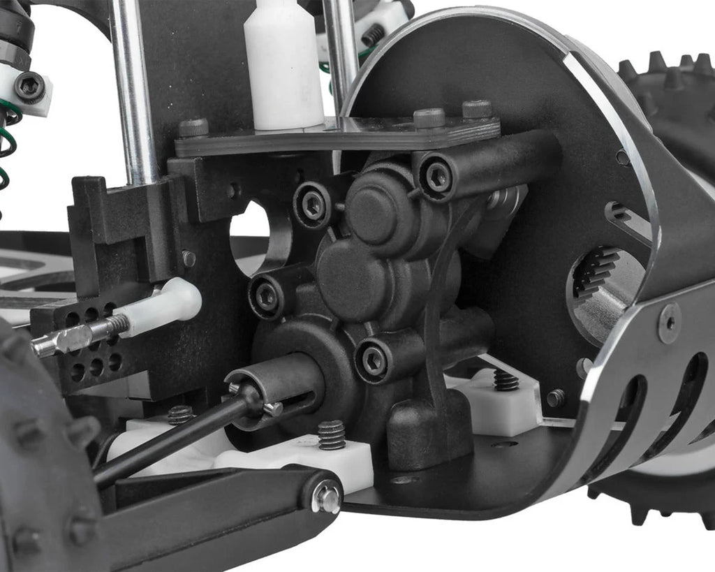 One of the standout features of this kit is its fully adjustable independent suspension on all four corners. The A-arm and ball joint configuration enables fine adjustments to camber, caster, ride height, and spring tension. Long-stroke hard anodized shocks provide smooth, responsive damping over rough terrain, and the low center of gravity ensures agile handling. Whether you're racing or showcasing it in your collection, this buggy offers precision performance.