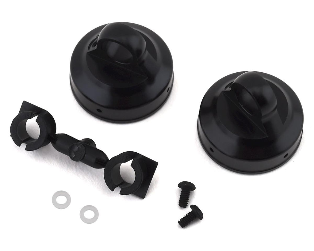 Team Associated RC8 B3.2 16mm Shock Caps. Package includes two replacement shock caps, with shock mount bushings, bleeder screws and bleeder screw washers compatible with the Team Associated RC8 B3.2 and B3.2e. These can also be used as a tuning option for the full range of RC8 B3 and RC8 T3 models. These shock caps provide a dual role, with both bleeder and bladder functionality. The shock caps feature four bleeder holes to make building bladder style shocks easier and quicker.