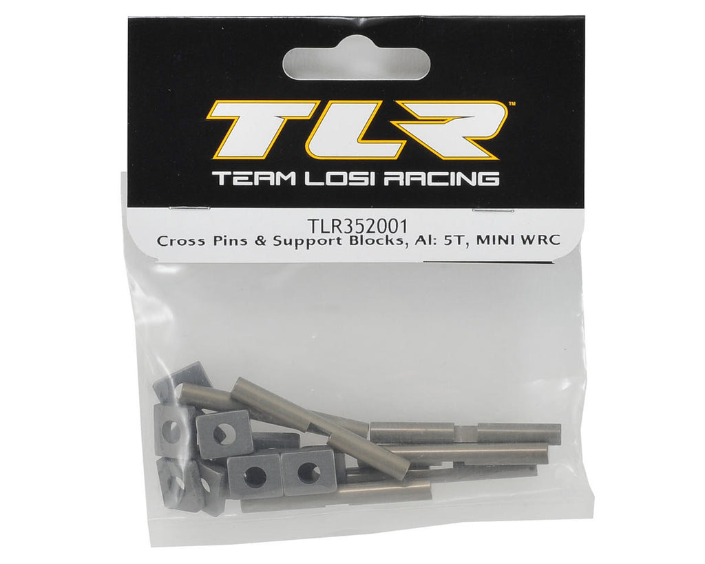 This is an optional Team Losi Racing Aluminum Cross Pin & Support Block Set. These aluminum cross pins and support blocks will help to reduce the weight of your diff's for reduced rotation mass and improved acceleration. Package includes six cross pins, and twelve support blocks, enough to upgrade the front, center and rear differential.