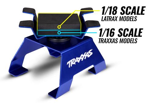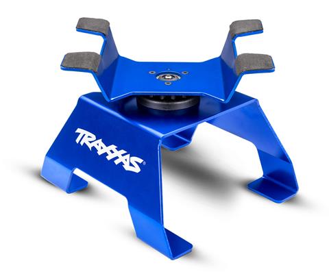 This Traxxas RC Car & Truck Stand rotates or locks in 16 positions and features a dual ball-bearing pivot for smooth rotation. Non-slip foam pads provide a firm hold for up to 1/8-scale models like the Sledge, while also preventing flat-spotting of tires and protecting the chassis. The exclusive Traxxas locking lever design makes it easy to position and secure your model. It is also compatible with TRX-4M and LaTrax models, with the purchase of TRA8794 foam insert.