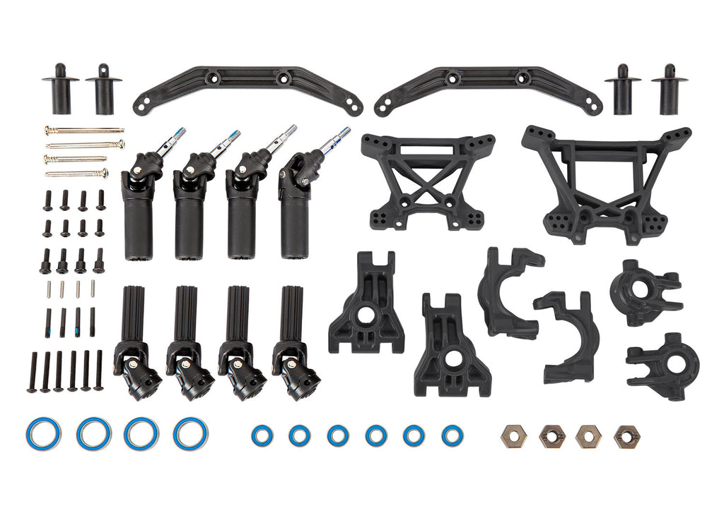 The Extreme Heavy-Duty Upgrade Kit transforms your already-tough Hoss® 4X4, Rustler® 4X4, or Slash® 4X4 into the ultimate bashing machine. Engineered for extreme brushless power systems, the kit includes a full complement of driveline and suspension parts designed to work together as a complete package. Whether you're sending it at the skate park or preparing for a speed run, the Extreme Heavy-Duty Upgrade Kit is battle-hardened to withstand brutal punishment and come back for more.