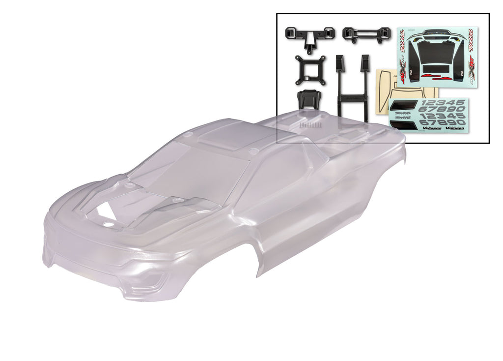 Body, Mini XRT® (clear, requires painting)/ window masks/ decal sheet (includes front & rear body latches, hardware) (for clipless mounting)