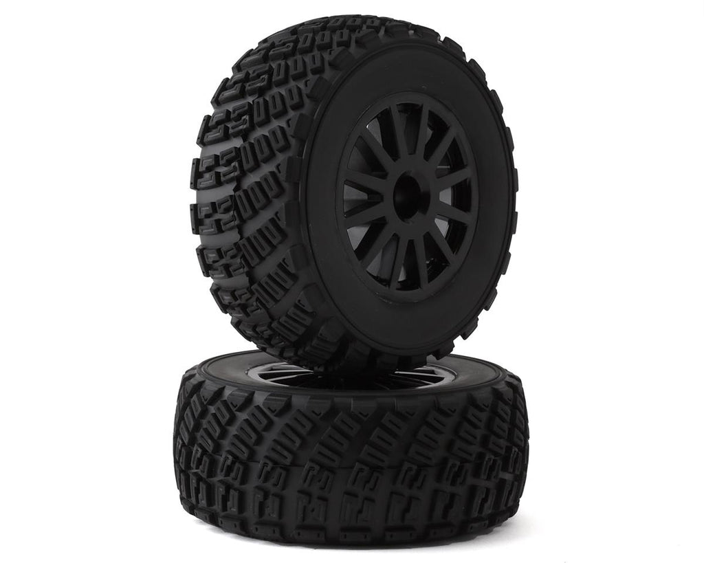 Traxxas Rally Pre-Mounted Tires with Rally Wheels. These replacement wheels are intended for the Traxxas Ford Fiesta ST Rally. Package includes two pre-mounted tires on rally wheels.